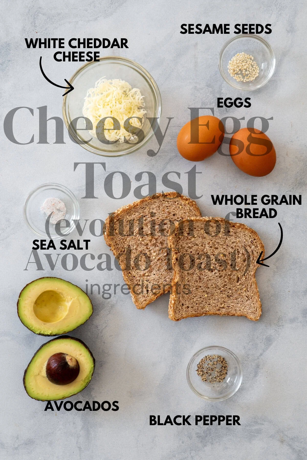 Key Ingredients for Cheesy Egg Toast (evolution of Avocado Toast)